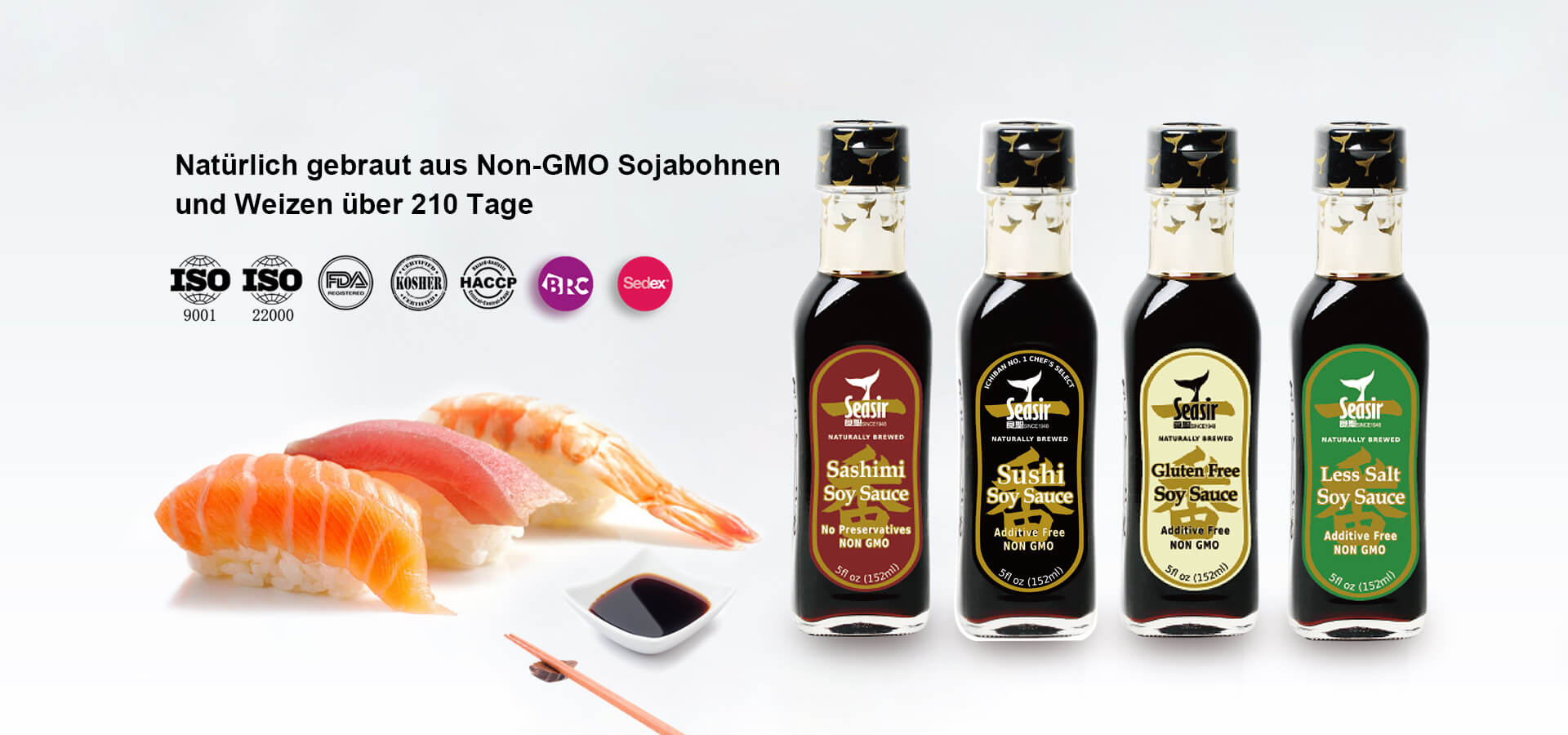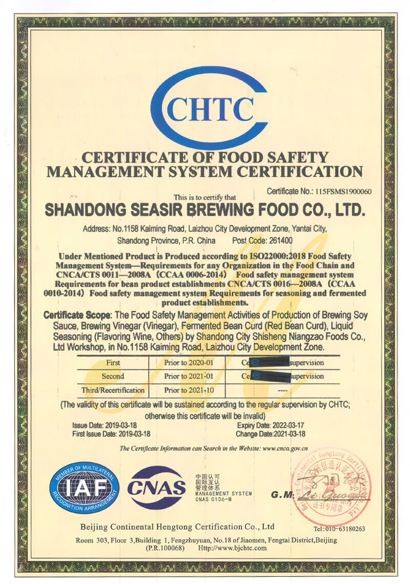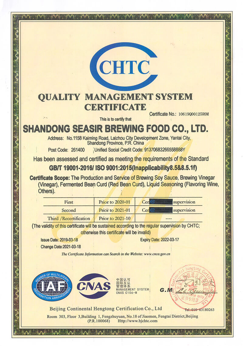 Der Hauptsitz befindet sich an der Ostküste Chinas, an der wunderschönen Bohai-Bucht, die über vier ausgeprägte Jahreszeiten und ein angenehmes Klima verfügt, das hervorragende natürliche Bedingungen für die Lebensmittelindustrie - Sojasoße und Essig - bietet. Unsere Sojasauce wird über 6 Monate nach japanischem Brauverfahren fermentiert.